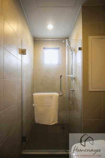 ภายในส่วนอาบน้ำจะมีหน้าต่างบานเล็กๆสำหรับระบายอากาศ เป็นหน้าต่างบานกระทุ้งกระจกฝ้า