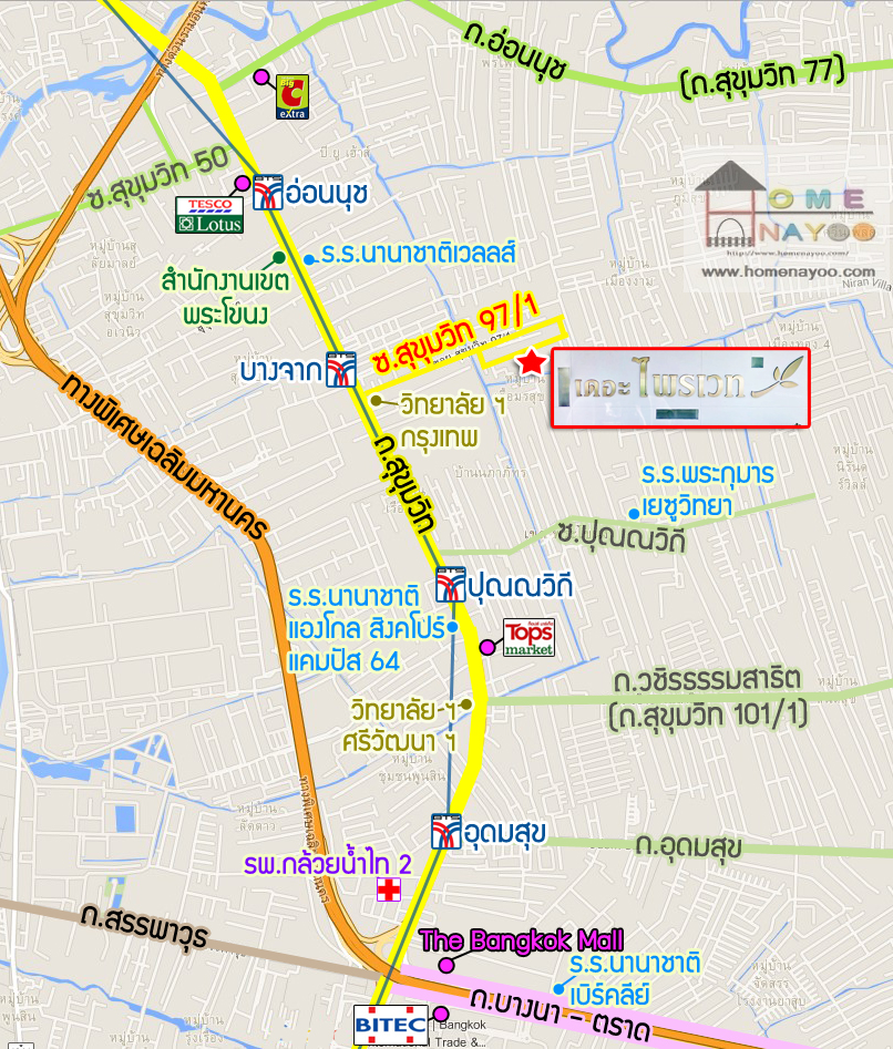 ที่ตั้งโครงการ : ซอยสุขุมวิท 97/1 ถนนสุขุมวิท แขวงบางจาก เขตพระโขนง กรุงเทพมหานคร 10260 ห่างจากสถานีรถไฟฟ้า BTS (ส่วนต่อขยาย) บางจาก ประมาณ 800 เมตร