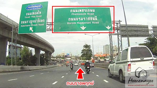 ให้เราอยู่ 2 ช่องขวาขึ้นสะพานต่างระดับสวนเลียบไปถนนเพชรเกษม และถนนบรมราชชนนี ตรงไปตามแนวรถไฟฟ้าสายสีลมคะ
