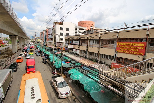 ยืนถ่ายภาพจากบนสะพานให้ดูค่ะ ฝั่งนี้จะเป็นตลาดบางแคทั้งหมด ซึ่งจะแยกเป็นตลาดย่อยๆ ตามซอยต่างๆ บริเวณทางเท้าจะคึกคักด้วยร้านค้าแผงลอย เรียงยาวไปจนถึงบ้านพักคนชราบางแค