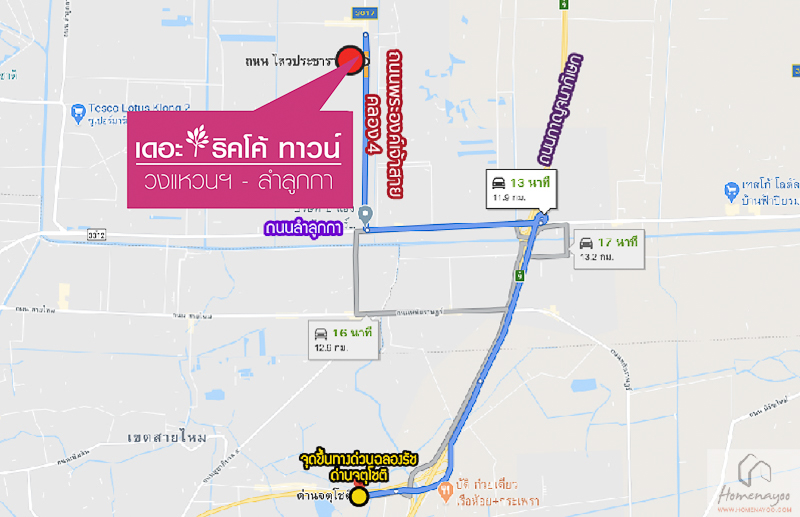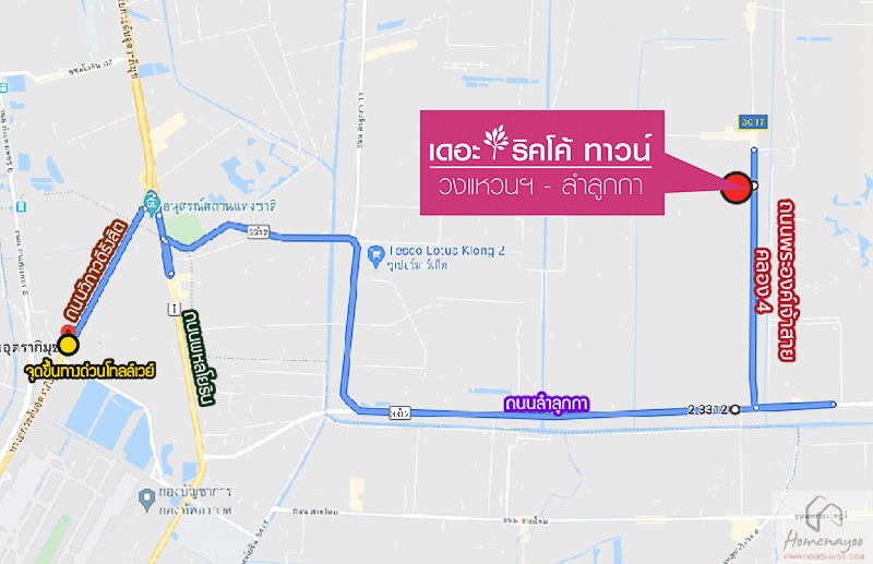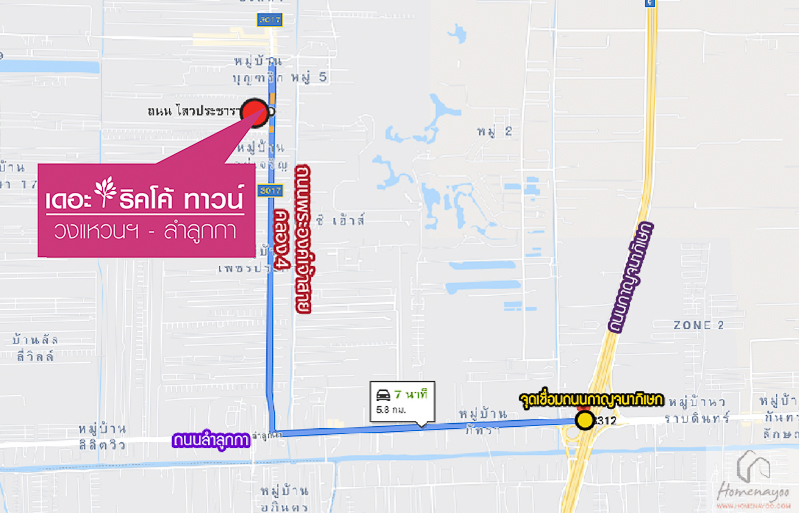 สวัสดีผู้อ่านชาว Homenayoo ทุกคน วันนี้ผมพามาชมโครงการ เดอะริคโค้ ทาวน์ วงแหวนฯ-ลำลูกกา โครงการใหม่จาก บริษัท พูลผลทรัพย์ จำกัด (PPS ASSET) ตั้งอยู่บนทำเลศักยภาพ ติดถนนพระองค์เจ้าสาย(ลำลูกกา-คลอง 4) ใกล้ถนนลำลูกกา ถนนรังสิต-นครนายก ถนนสายไหม ถนนพหลโยธิน ถนนวิภาวดีรังสิต ถนนกาญจนาภิเษก ใกล้ทางด่วนรามอินทรา-อาจณรงค์ และทางด่วนโทลล์เวย์ ใกล้รถไฟฟ้าสายสีเขียวสถานีคลอง 4 และใกล้สนามบินดอนเมือง รายล้อมไปด้วยสิ่งอำนวยความสะดวกครบครัน