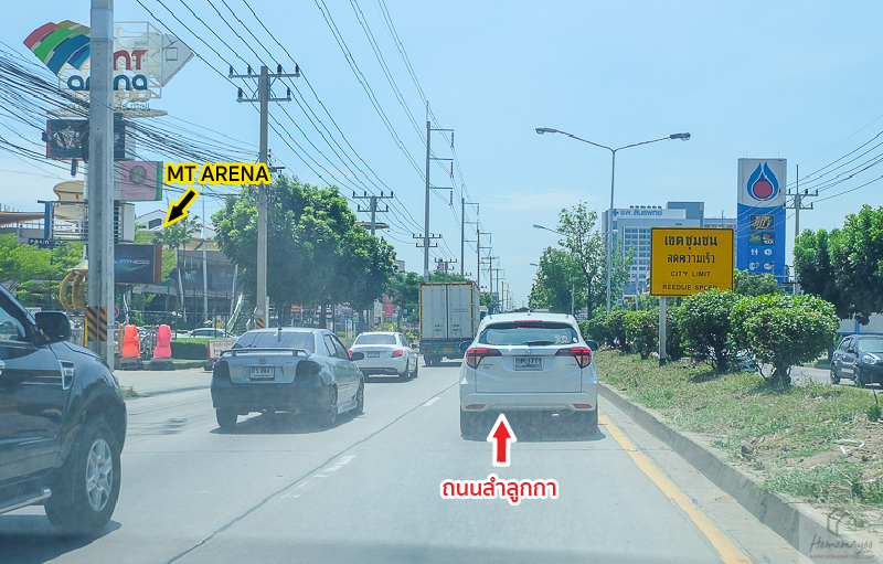 จากนั้นเลี้ยวซ้ายเข้าถนนลำลูกกา