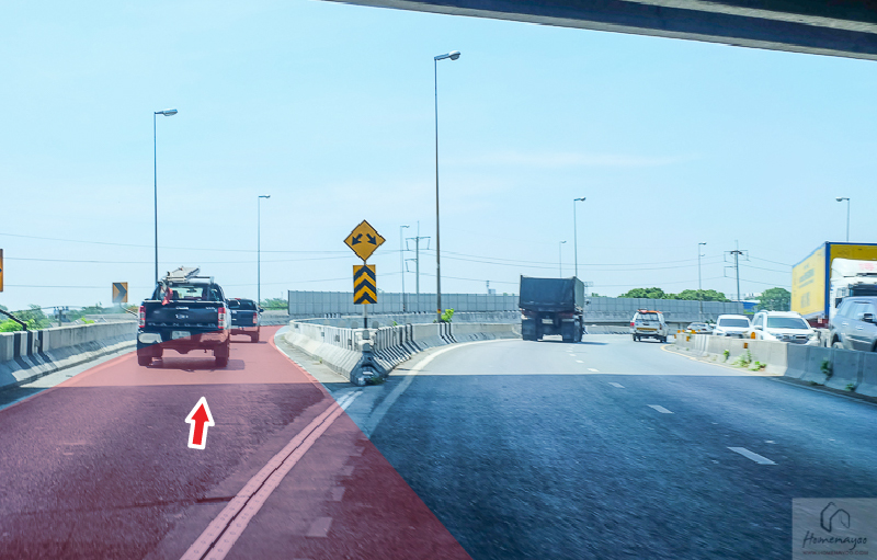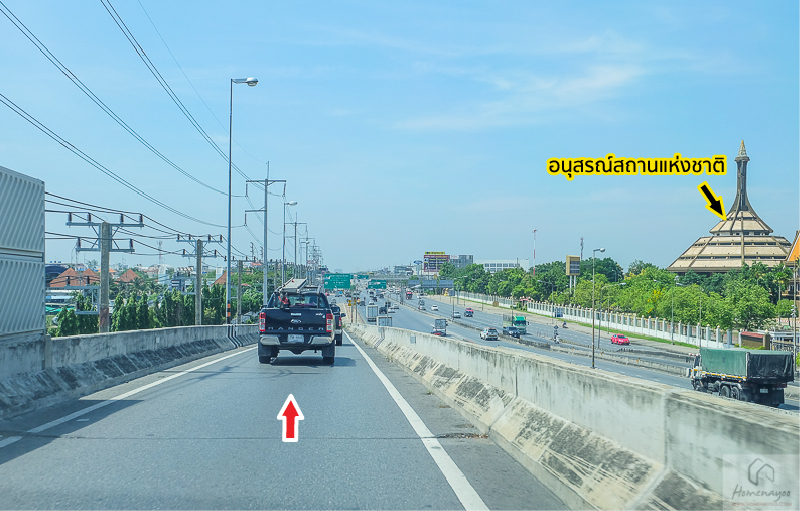 จากนั้นวนขึ้นสะพานเบี่ยงซ้ายออกไปตามป้ายลำลูกกา