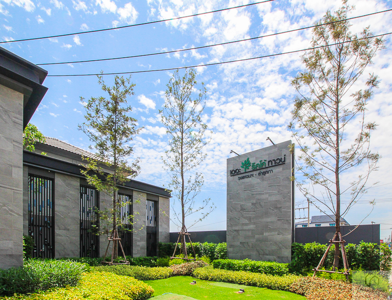 มีป้ายโครงการติดไว้ชัดเจน พร้อมตกแต่งสวนรอบๆ