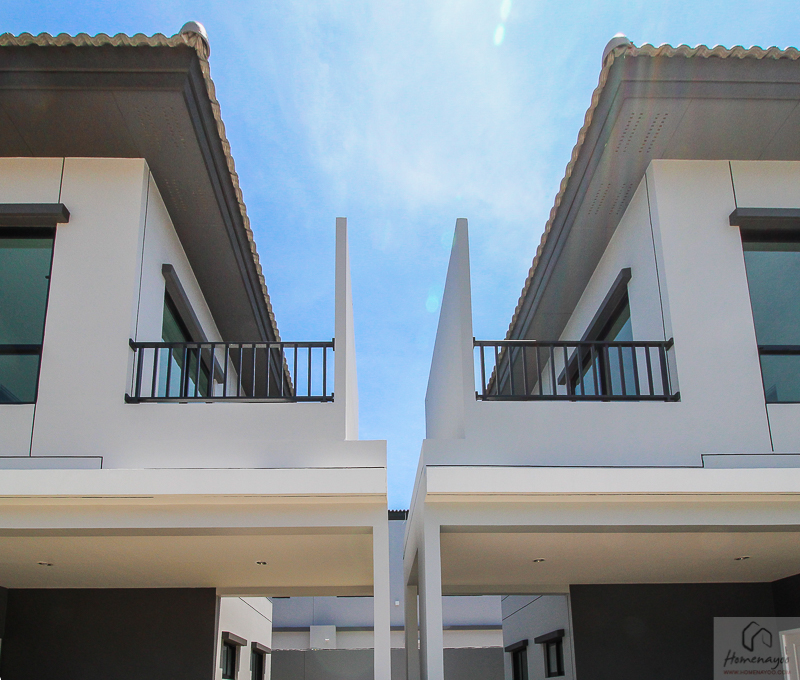 แบบบ้านเแฝดออกแบบให้ได้อารมณ์บ้านเดี่ยว มีส่วนที่เชื่อมกันระหว่างบ้าน 2 หลังเป็นคานที่อยู่ใต้ดิน จะไม่มีผนังบ้านที่แชร์กันเลย ตรงพื้นที่ส่วนครัวในบ้านจะเดินระบบน้ำไว้รองรับ ถ้าไม่ทำครัวในบ้านสามารถปรับเปลี่ยนเป็นห้องทำงาน ห้องเก็บของก็ได้ ที่ชั้นบนห้อง Master Bedroom ทำออกมาได้กว้างดี มีพื้นที่ทำ Walk in closet ได้ ไฮไลท์อยู่ตรงที่ช่องแสงที่ทำเป็นบานสูงแบ่งเป็นบานกระทุ้งเปิดระบายอากาศได้ดี พร้อมราวกันตกที่ออกแบบพื้นที่ให้คล้ายๆเป็นระเบียงห้องไปในตัว