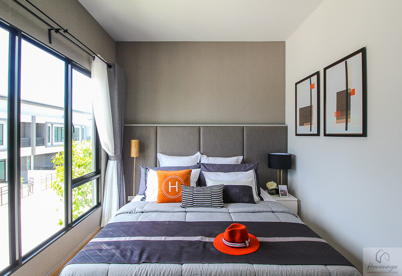 แบบบ้านทาวน์โฮมมีห้องนอนชั้นล่างไว้รองรับผู้สูงอายุ ที่ชั้นบนห้องนอนแต่ละห้องแบ่งพื้นที่มาได้กว้างดีสามารถวางตู้ โต๊ะ เตียงได้ครบ ห้อง Master Bedroom มีพื้นที่ให้ทำส่วนแต่งตัวได้ มีทางเข้าห้องน้ำจากในห้องนอนได้