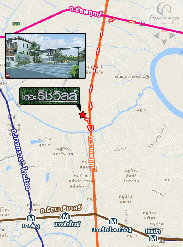 จากนั้นระยะทางอีก 250 เมตร เลี้ยวขวาเข้าโครงการ เดอะริชวิลล์ ราชพฤกษ์ ถึงโครงการแล้วครับ