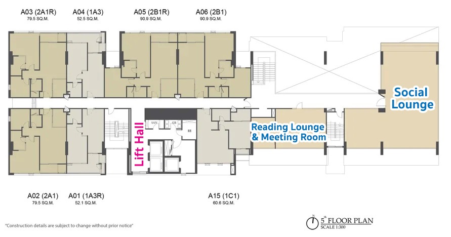 และส่วนกลางหลัก ๆ จะอยู่ที่ชั้น 4, 5 โดยมีสระว่ายน้ำ, Jacuzzi และห้องฟิตเนสขนาดใหญ่ และสวนพักผ่อน พร้อมห้องพักผ่อนที่ใช้เป็น Co-Working Space ได้ ระบบรักษาความปลอดภัยทั้ง รปภ.24 ชั่วโมง, CCTV, เข้า-ออกด้วย Access Card Control