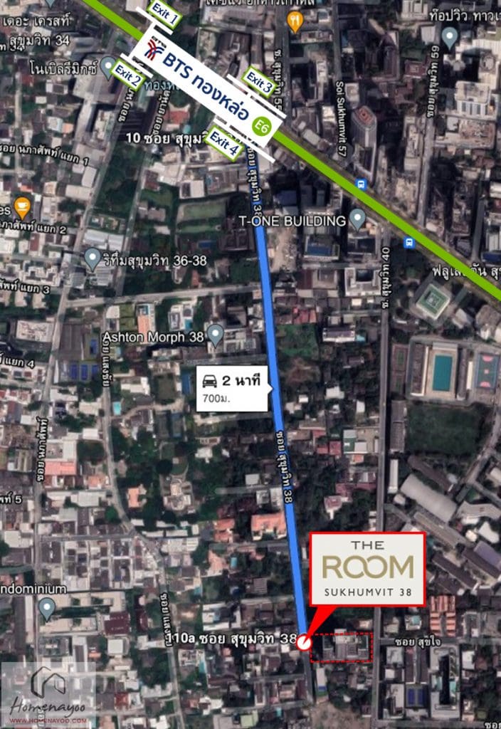 โครงการ The Room สุขุมวิท 38 จะอยู่ห่างจาก BTS ทองหล่อ Exit 4 ประมาณ 700 เมตร ถ้าใครที่สายชิล ก็สามารถเดินเท้าไปได้ ประมาณ 10 นาที ถึงสถานีรถไฟฟ้าค่ะ