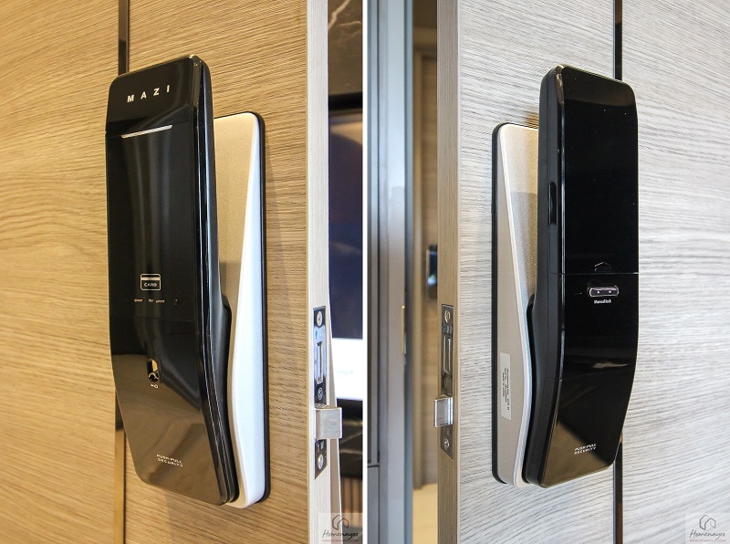 มีชั้นวางของหรือม้านั่งเลื่อนไปมาได้ให้มาด้วยค่ะ มีฉากกั้นห้องน้ำเป็นกระจก พร้อมฝักบัวและ Rain Shower มาให้ ฝ้าเพดานห้องสูง 2.7 เมตร พื้นเป็นไม้ลามิเนต 12 มม. กับพื้นห้องน้ำเป็นกระเบื้อง Porcelain 60 x 60 ซม. ประตูทางเข้าออกห้องมี Digital Door lock มาให้