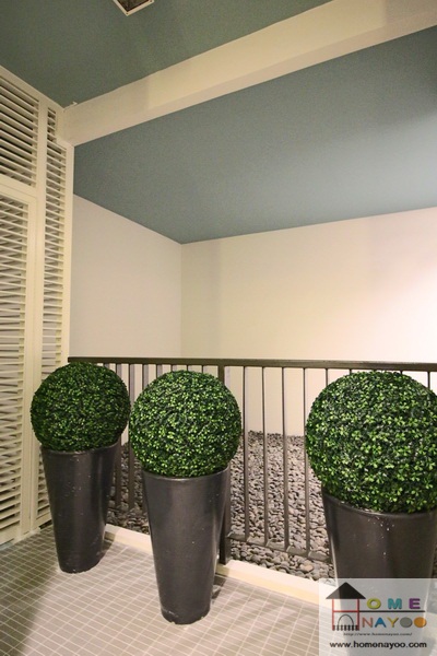 ด้านซ้ายมุมระเบียง กั้นเป็นห้องเก็บคอมเพรสเซอร์แอร์ ดูเป็นสัดส่วน
