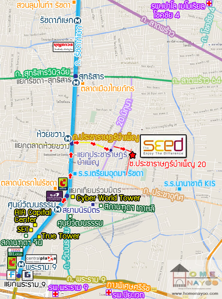 เลี้ยวเข้า ซอยประชาราษฎร์บำเพ็ญ 20 ตรงไปหน่อยก็ถึงโครงการ The Seed รัชดา – ห้วยขวาง