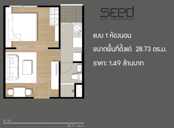 1 Bedroom ขนาดเริ่มที่ 28 ตร.ม.