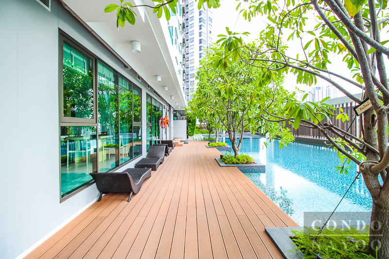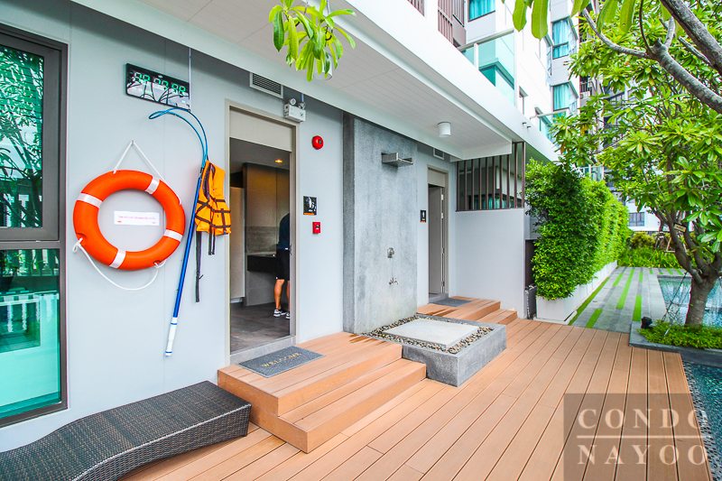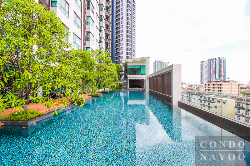 สิ่งอำนวยความสะดวก – Facility หลักๆของโครงการอยู่ที่ชั้น 1 , 7 และดาดฟ้า ที่ชั้น 1 มี Lobby มีร้านค้า 4 ร้าน รอบๆโครงการมีสวนหย่อมพร้อมที่นั่งพักผ่อน ที่ชั้น 7 มี Library & Co-working space มีห้อง Laundry และมีสระน้ำระบบเกลือขนาด 25 x 8 ม. ลึก 1.2 ม. แบ่งสระเด็ก รอบสระมีพื้นที่นั่งพักผ่อน มีห้องน้ำแยกชายหญิงพร้อมห้องซาวน่า มีอาคารฟิตเนส 2 ชั้น ชั้นล่างเป็นพื้นที่นั่งเล่น ชั้น 2 เป็นห้องฟิตเนสวางเครื่องออกกำลังกายมาหลากหลาย ส่วนที่ชั้นดาดฟ้ามีสวนหย่อม และพื้นที่นั่งพักผ่อน นั่งเล่นและจัดปาร์ตี้เล็กๆได้ ลิฟต์โดยสารมีให้ 4 ตัว และลิฟท์ขนของ 1 ตัว ที่จอดรถจอดได้ที่ชั้น 1-6 ทั้งโครงการคิดเป็น 60% รวมซ้อนคัน ระบบรักษาความปลอดภัยมีรปภ. มี CCTV และผ่านเข้าออกด้วยระบบ Key Card Access