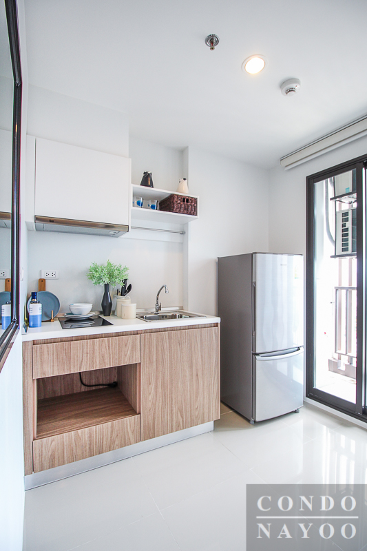 ออกจากห้องนอนมา ติดกันเป็นห้องครัวได้ประตูกระจกบานเลื่อน 1 บาน