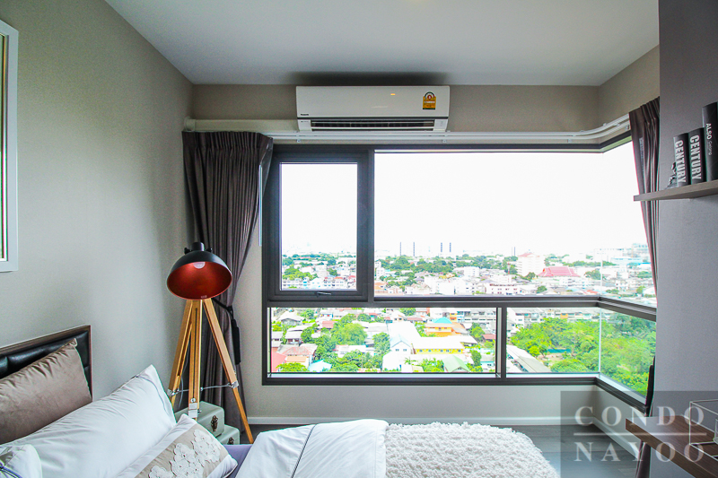 หน้าต่างในห้องนอนเป็นบานกระทุ้ง 1 บาน ที่เหลือเป็นบาน Fixed แบบเข้ามุม แอร์ติดผนัง 1 ตัว