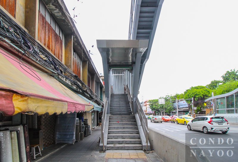 เริ่มจากด้านหน้าโครงการเดินไปฝั่งแยกบางโพ เดินตามทางเท้าไปจนถึงทางขึ้นสถานีได้เลย
