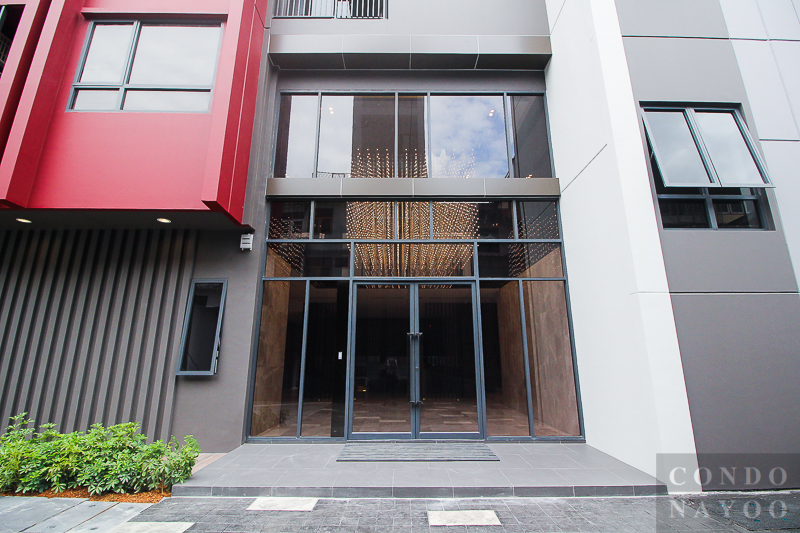 การออกแบบโครงการและวัสดุ : โครงการสไตล์โมเดิร์น ใช้สีแดงและเทาเป็นหลัก แยกเป็น 2 อาคาร คือตัวอาคาร A เป็นอาคารสูง 22 ชั้น ตั้งอยู่ฝั่งติดถนนและอาคาร B เป็นตึกเล็ก สูง 8 ชั้น ตั้งอยู่ด้านหลัง โดยตัวอาคาร B จะใช้เป็นที่จอดรถตั้งแต่ชั้นใต้ดิน 2 ชั้น ขึ้นไปจนถึงชั้น 3 ซึ่งทั้ง 2 อาคารจะมีทางเชื่อมกันที่ชั้น 3 ของอาคาร A ซึ่งจะเป็นชั้นที่มีพื้นที่ส่วนกลางอย่างพวกห้อง Co-Working Space และสวนหย่อมค่ะ