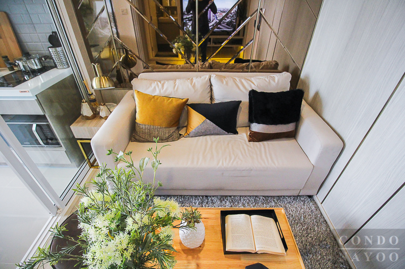 เรามาดูห้องตัวอย่างแยกเป็นโซนๆกันก่อน ส่วนแรกจะเป็นพื้นที่ห้องรับแขก