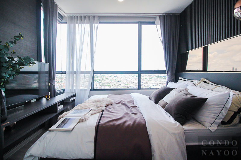 ภายในห้องนอนเองจะไม่ได้มีขนาดกว้างมากนะคะ คือพอวางเตียงขนาดควีนหรือคิงส์ไซส์ได้ แต่ไม่มีพื้นที่เหลือสำหรับฟังก์ชั่นอื่นๆเท่าไหร่