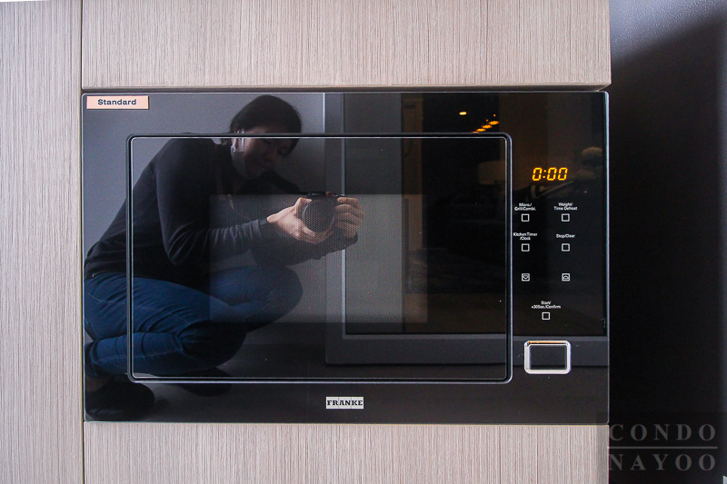 ห้องนี้จะมีไมโครเวฟติดตั้งมาให้พร้อมชุดเคาน์เตอร์ครัวด้วยค่ะ
