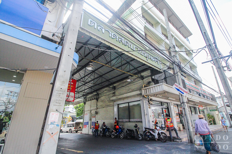 มาดูบรรยากาศของจริงกันบ้าง เริ่มจากหน้าโครงการจะติดกับถนนจรัญสนิทวงศ์ ฝั่งตรงข้ามเป็นตลาดบางขุนศรี