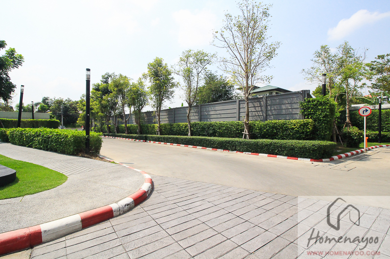 มาดูของจริงกันต่อเลยค่ะ เริ่มจากหน้าโครงการจะมีแยกทางรถเข้าโครงการและทางเดินเท้าเข้าโครงการ ติดกับฟุตบาทหน้าโครงการ จะมีจัดลงไม้พุ่มตกแต่งมา ทำให้โครงการดูสดชื่นขึ้น