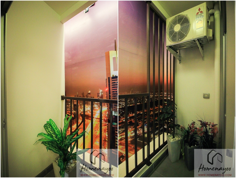 ขนาดระเบียงกว้างกว่าห้องแบบที่แล้ว สามารถวางราวตากผ้าขนาดกลางๆ หรือจะใช้ปลูกไม้กระถางก็ได้ค่ะ