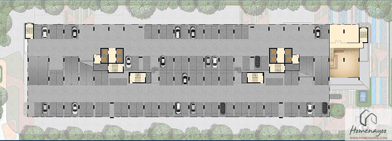 แปลนอาคาร ชั้น 2 – 4 จะเป็นชั้นที่จอดรถ รวมที่จอดรถทั้งหมดในโครงการ สามารถจอดได้ 400 คัน หรือ 30% ไม่รวมจอดซ้อนคันค่ะ