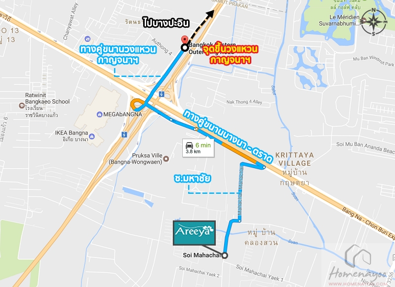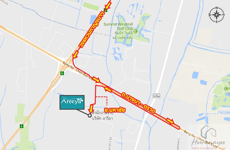 จากถนนบางนา – ตราดเข้ามาภายในซอยมหาชัย ให้ขับตามเส้นทางเข้าไปเรื่อยๆประมาณ 1.3 กม.ก็จะเจอสำนักงานขายอยู่ฝั่งขวามือค่ะ