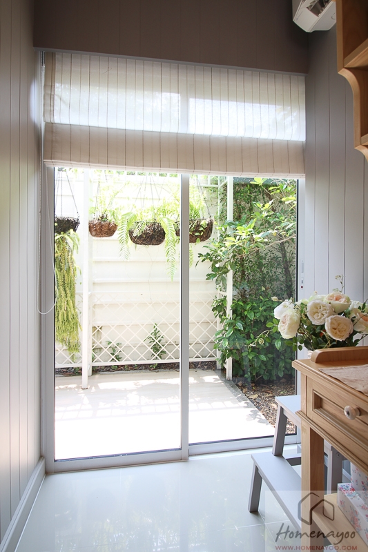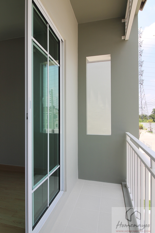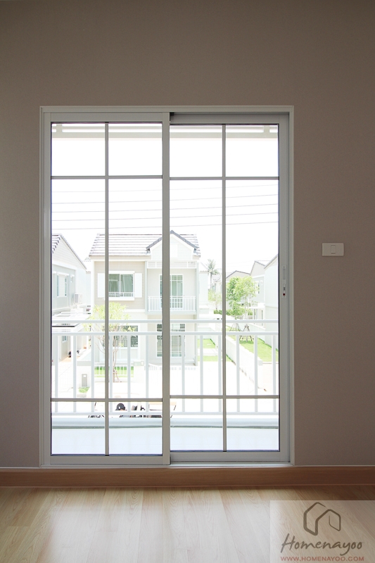 ประตูทางออกระเบียงก็จะเป็นบานกรอบอลูมิเนียมกระจกเขียวตัดแสงอีกเช่นกัน