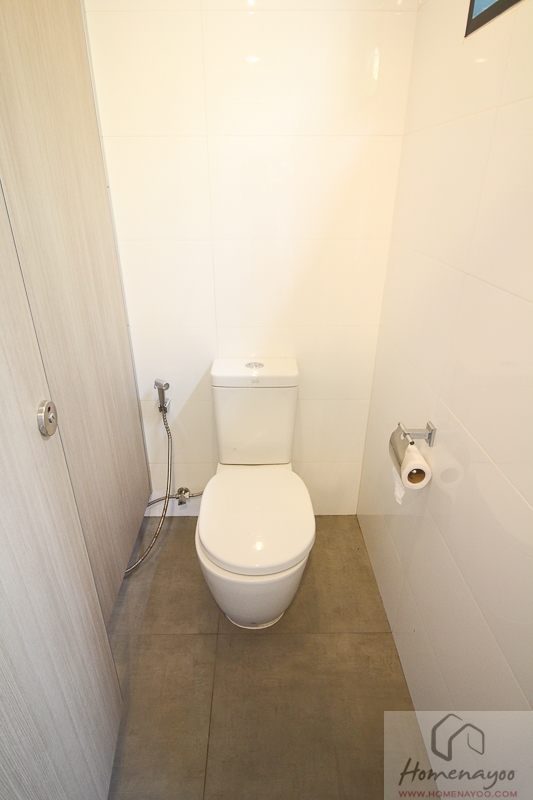โถสุขภัณฑ์ระบบ Single Flush พร้อม Accessories ประกอบติดตั้งให้เรียบร้อย ระยะนั่งของโถกำลังดีค่ะ