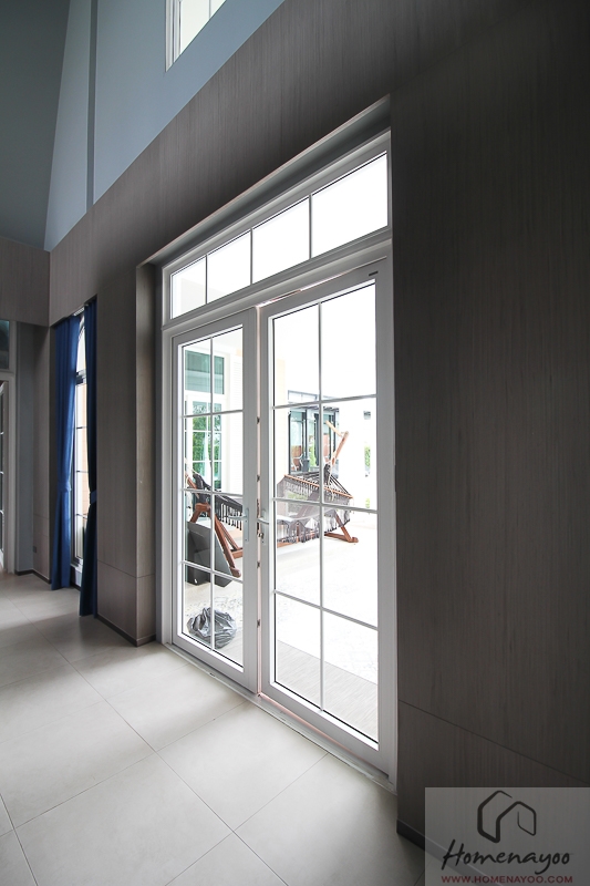 ประตูทางออกระเบียงก็จะเป็นบาน UPVC กระจกเขียวตัดแสงอีกเช่นกัน