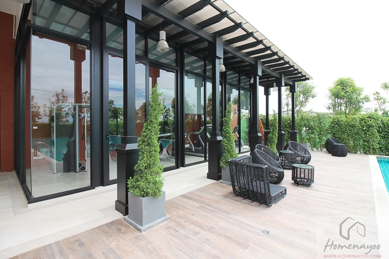 ถัดไปด้านหลังสำนักงานขายก็จะเจอคลับเฮ้าส์ค่ะ ภายในมี Lobby, Game room, ห้องพักผ่อน, ห้องประชุม, ฟิตเนส และสระว่ายน้ำ ส่วนในรายละเอียดจะเป็นอย่างไรนั้นขอให้ตามอ่านในหัวข้อถัดไปนะ