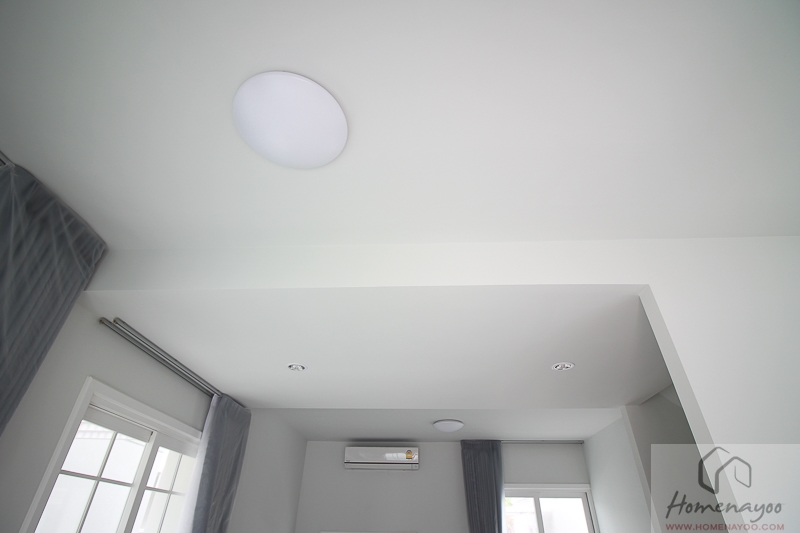 ภาพจากทางบ้านมาตรฐาน บริเวณลายผนังของห้องนอนจะเดินปลั๊กไฟและสายอากาศเอาไว้ให้ ภายในห้องจะมีช่องแสงให้อยู่ 2 ตำแหน่งคือประตูระเบียงและหน้าต่าง ดวงโคมที่ได้ภายในห้องจะเป็นดวงโคมซาลาเปานะคะ
