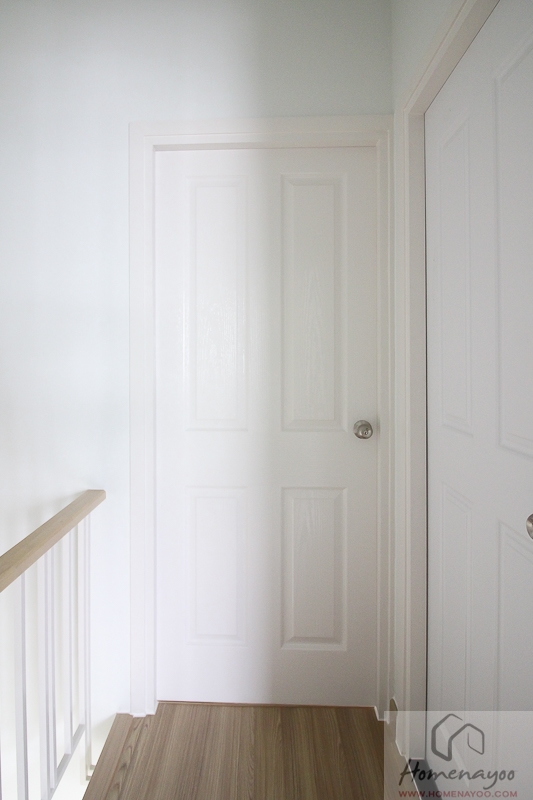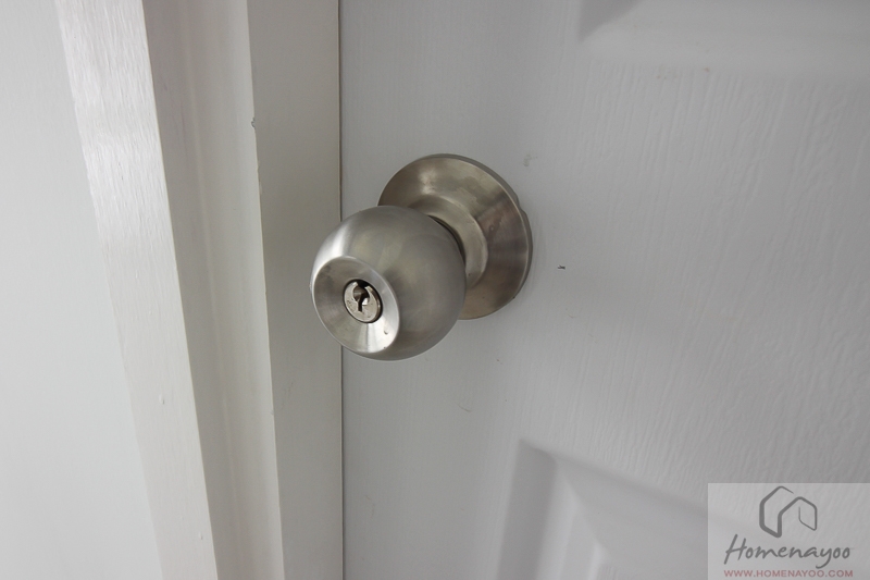 ประตูห้องนอนทุกห้องจะเป็นประตูบานสำเร็จรูป มือจับแบบลูกบิดสแตนเลส