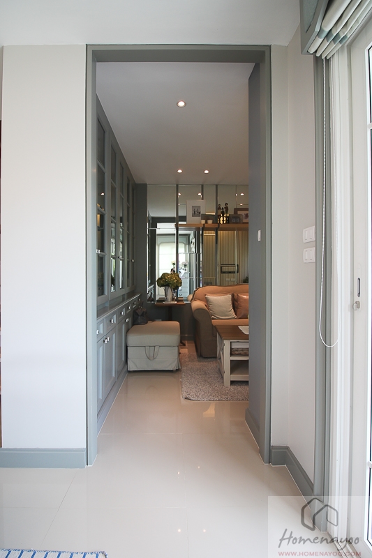 มองย้อนออกไปที่ัฝั่งประตูทางเข้าห้อง ฝั่งนี้ก็สามารถวางแทนเป็นตู้เสื้อผ้าและโต๊ะเครื่องแป้งขนาดย่อมๆได้ค่ะ