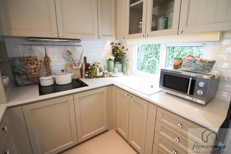 ด้านข้างห้องครัวฝั่งหลังบ้านจะมีประตูบานเลื่อนเปิดออกสู่ลานซักล้างได้