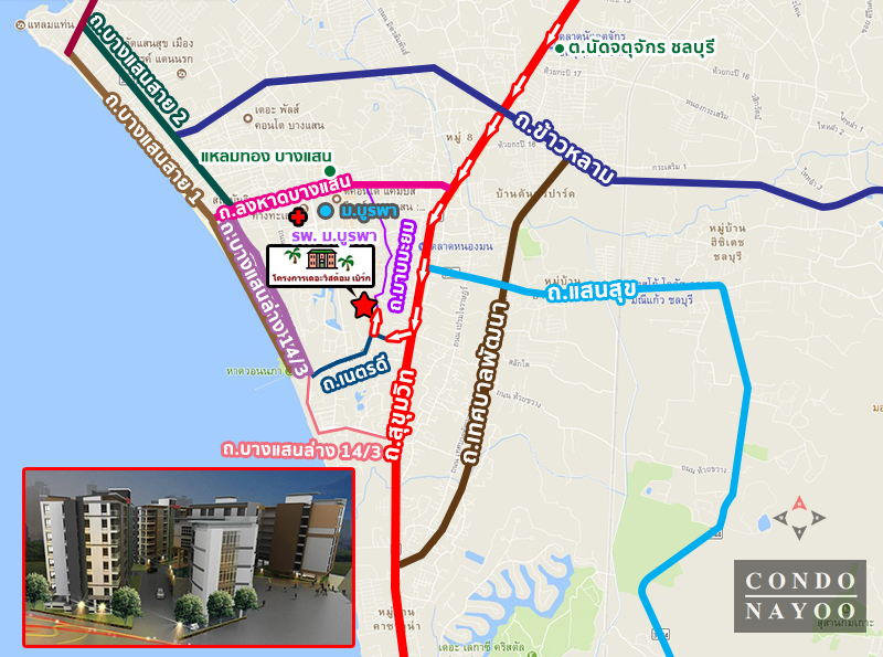 The Wisdom Burg บางแสน คอนโดพร้อมอยู่ โครงการจาก อินเตอร์รีเจ้นท์ เอสเสท ตั้งอยู่บนถนนมาบมะยม ต.แสนสุข อ.เมือง จ.ชลบุรี ใกล้ ม.บูรพา, แหลมทอง บางแสน, ตลาดหนองมน และชายหาดบางแสน