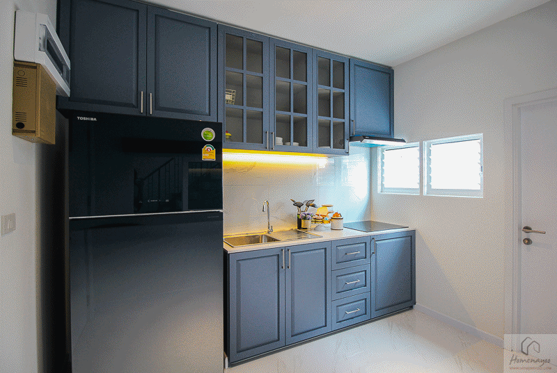 ติดกับห้องนอน 4 จะเป็นห้องครัว มีพื้นที่มาให้ประมาณ 3 x 2.4 ม. จะได้ชุดเคาน์เตอร์ครัวตามนี้เลย