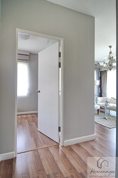 ขึ้นไปก็จะเป็นพื้นที่แบบนี้ค่ะ เจอโถงบันไดที่เป็นส่วนแจกจ่ายไปยังห้องต่างๆ ชั้นนี้จะมี 2 ห้องนอน 1 ห้องน้ำ ด้านซ้ายมือสุดคือห้องน้ำ ตรงหน้าคือห้องนอน 3 และด้านขวาเป็นห้องนอน 2 ค่ะ พื้นปูด้วยลามิเนตแบบเดียวกับชั้น 2 ค่ะ