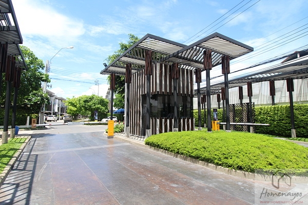 หน้าโครงการจะมีป้ายโครงการให้เห็นชัดเจนก่อนถึงซุ้มประตูค่ะ โดยรอบมีต้นไม้และสวนเล็กๆทำให้โครงการดูร่มรื่นค่ะ