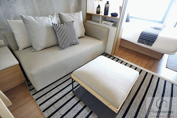 การออกแบบโครงการและวัสดุ – แบบห้องของโครงการจะขายเป็น Fully Furnished คือเฟอร์นิเจอร์ต่างๆครบครันเพียงแค่เตรียมฟูกและเสื้อผ้าเข้ามาก็อยู่ได้เลยค่ะ เพราะจากห้องตัวอย่างที่เห็น ตู้เก็บของ ตู้เก็บรองเท้า โซฟา ตู้เสื้อผ้า ฐานเตียง โต๊ะหัวเตียง ที่เห็นทั้งหมดนั้นจะได้ไปเลยยกเว้นเพียงแค่ของตกแต่ง ในครัวจะมีเคาน์เตอร์ครัว พร้อมตู้เก็บของให้ อ่างล้างจาน และเตาแบบลอยตัว