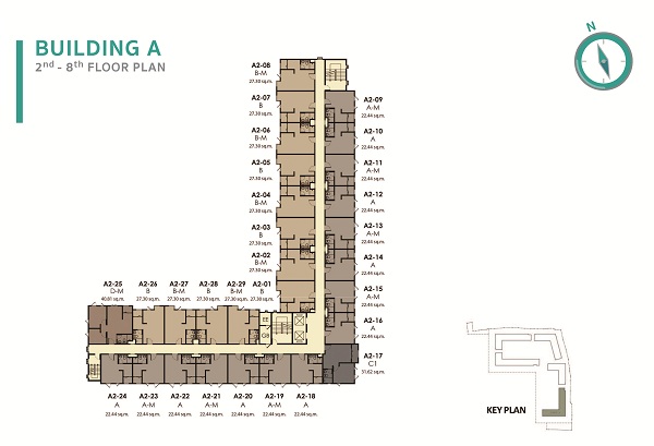| ลักษณะห้องและขนาดห้อง | – Studio : 22.44-27.30 ตร.ม. – 1 Bedroom : 30.09-36.00 ตร.ม. – 2 Bedrooms : 40.81-50.09 ตร.ม. – Duplex : 69.48 ตร.ม. |