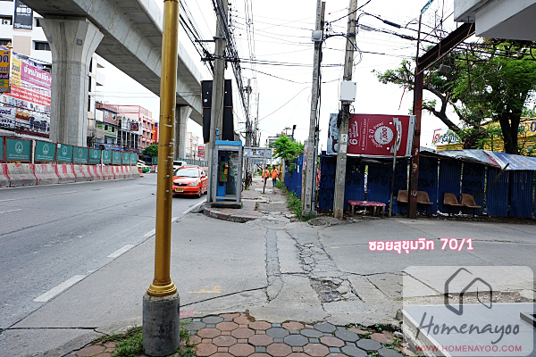 ถัดจากป้ายรถเมล์มาหน่อยขวามือก็จะเป็นซอยสุขุมวิท 70/1 แล้วค่ะ ถ้าโครงการสร้างเสร็จแล้ว ซอยนี้ก็จะเป็นอีกทางที่สามารถเข้าสู่ตัวโครงการได้เช่นกัน แต่จะมีระยะไกลกว่าซอยสุขุมวิท 72 ซึ่งเป็นทางเข้าออกหลักของโครงการ วันนี้เราตรงต่อไปเพื่อเข้าซอยสุขุมวิท 72 ที่อยู่ถัดไปอีกซอยนะคะ
