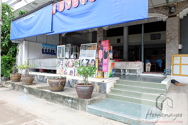 ใต้อาคารพาณิชย์มีร้านอาหารตามสั่งอยู่ ขายส้มตำและอาหารอิสาน และมีไอติมขายแก้เผ็ดด้วย