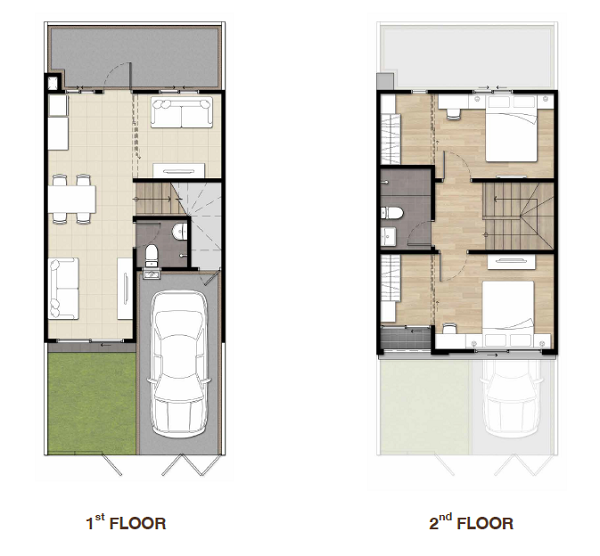 ที่ดินบ้านเริ่มต้น 16.5-20.2 ตร.ว. ขึ้นไป พื้นที่ใช้สอยเริ่มต้น 103-130 ตร.ม. ฟังก์ชันตอบโจทย์คนรุ่นใหม่และครอบครัวขยาย มี 2-3 ห้องนอน, 2-3 ห้องน้ำ, 1 ห้องอเนกประสงค์ พร้อมที่จอดรถ 2 คัน หลังบ้านมีการลงเข็มมาให้พร้อมต่อเติม