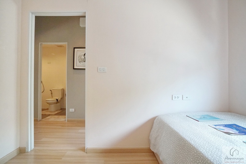เข้ามาด้านในห้องนอน 3 พื้นที่ใช้งานจะเล็กกว่าห้องนอน 2 เล็กน้อย แต่ก็สามารถรองรับเตียงนอน 3.5-5 ฟุต และเฟอร์นิเจอร์มาตรฐานได้อยู่