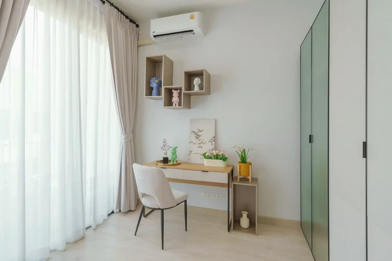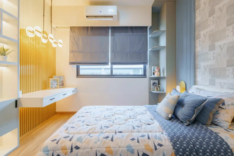 บรรยากาศภายในห้องนอนรองแบบบ้านทาวน์โฮม 3 ชั้น