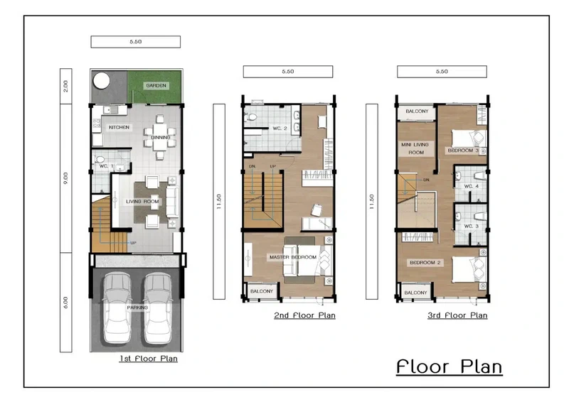 แปลนบ้านชั้น 1 / ชั้นลอย / ชั้น 2 / ชั้น 3